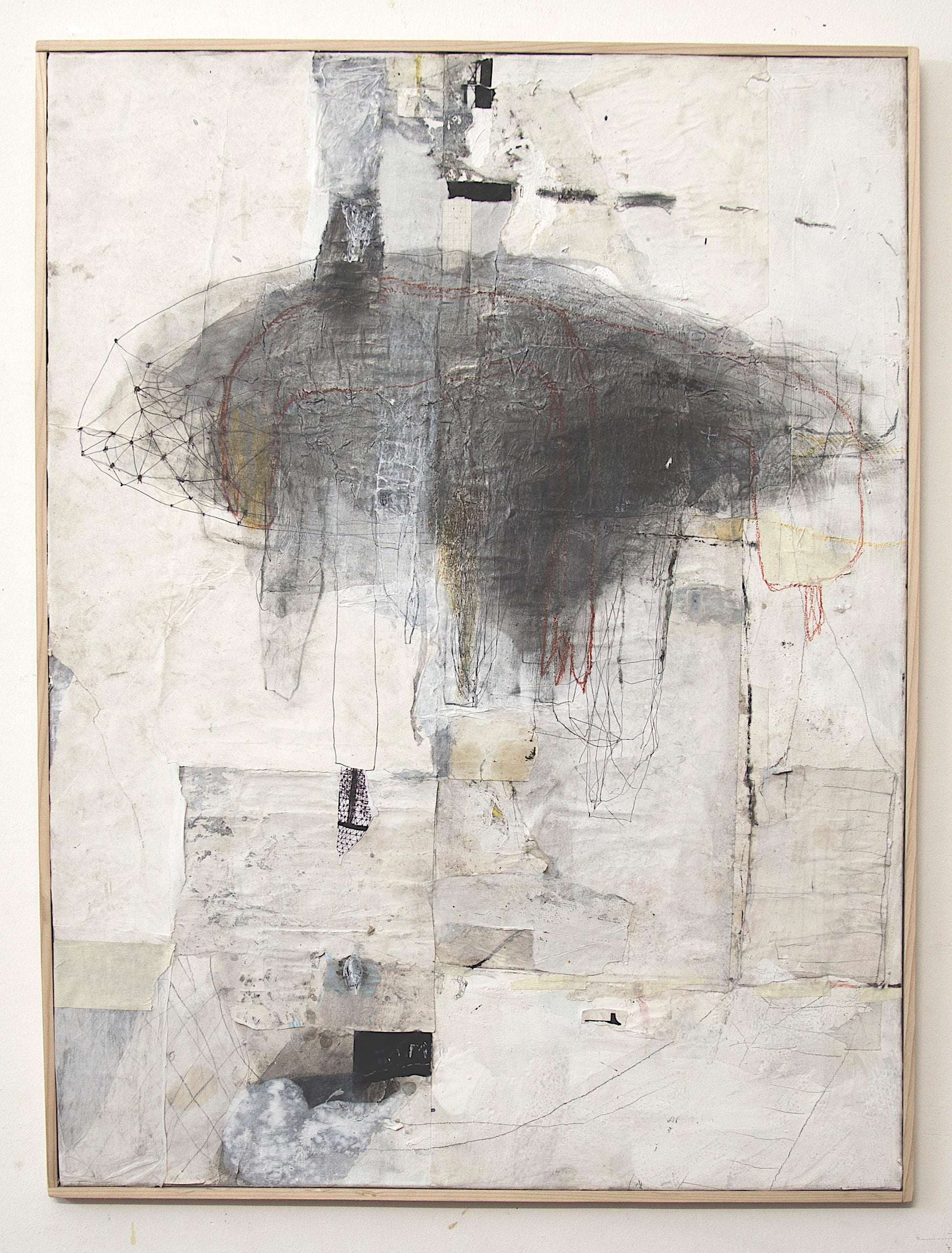 The gesture in his sign, primeval and knowing at the same time, creates a connection between the unformed and visually recognizable forms. Matter comes from a stratification and accumulation of paper, while the temporal process becomes essential. The design tension in shapes sometimes recognizable and sometimes not, carved in the strong density of colour meant as matter, extends in a chaotic and cryptic connection with language and numerology, engaging our eyes in a search for mysterious relationships between signs, figures and space.