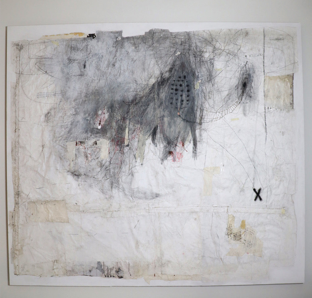 The gesture in his sign, primeval and knowing at the same time, creates a connection between the unformed and visually recognizable forms. Matter comes from a stratification and accumulation of paper, while the temporal process becomes essential. The design tension in shapes sometimes recognizable and sometimes not, carved in the strong density of colour meant as matter, extends in a chaotic and cryptic connection with language and numerology, engaging our eyes in a search for mysterious relationships between signs, figures and space.