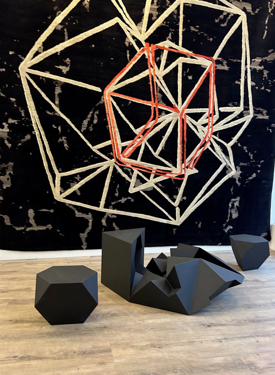 Chaque Cube de Gabo est une boucle de Moebius dans laquelle intérieur et extérieur sont fusionnées en une seule méta dimension. Toujours en explorant des nouvelles techniques et matériaux, Gabriele Dal Dosso fait aujourd'hui appel à l'ancien savoir-faire des maîtres noueurs Iraniens de la Maison Thaissa pour transposer la mystique mathématique de son Cubo di Gabo en des tapis nous permettant d'explorer d'autres dimensions hors de l’ordinaire.