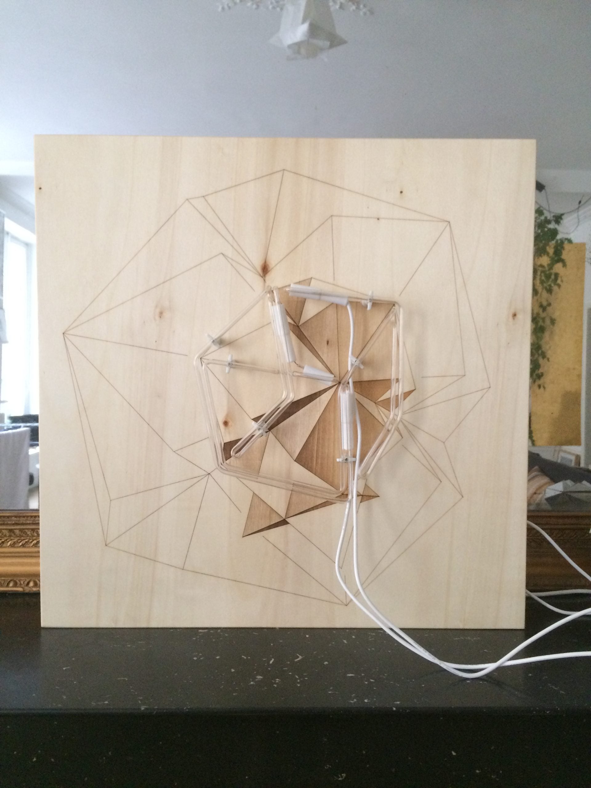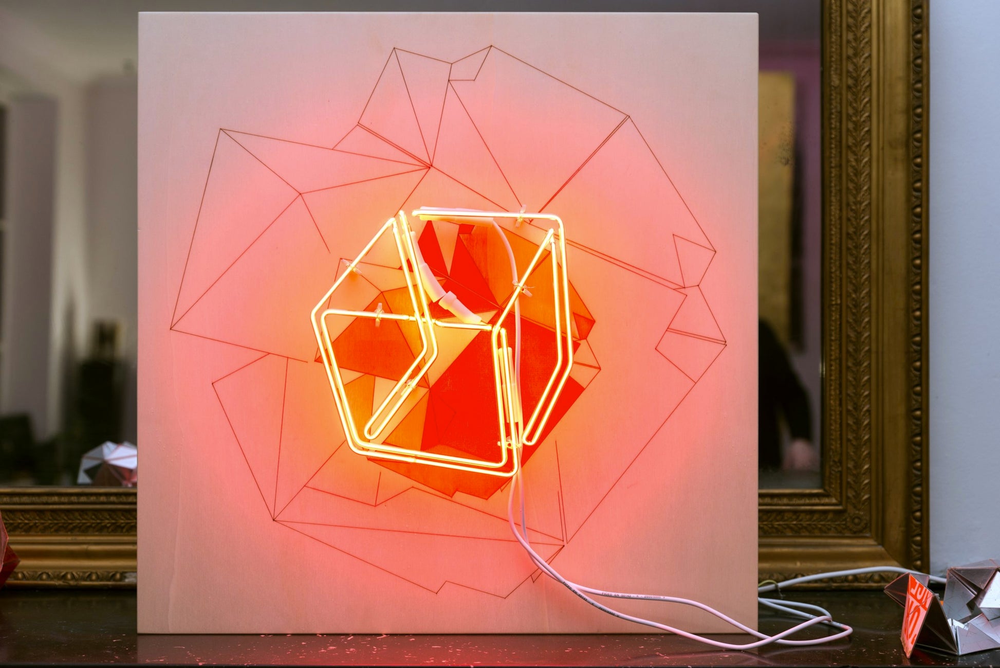 In the work CUBO DI GABO, Gabriele Dal Dosso approaches various materials such as wood, volcanic stone from Vesuvius, Carraramarble and neon tubes, to concretize a 2D transposition of his works. At the same time, he looks to 3D printing as a sculpture, a perfect reproduction of his studies in a limited editions.