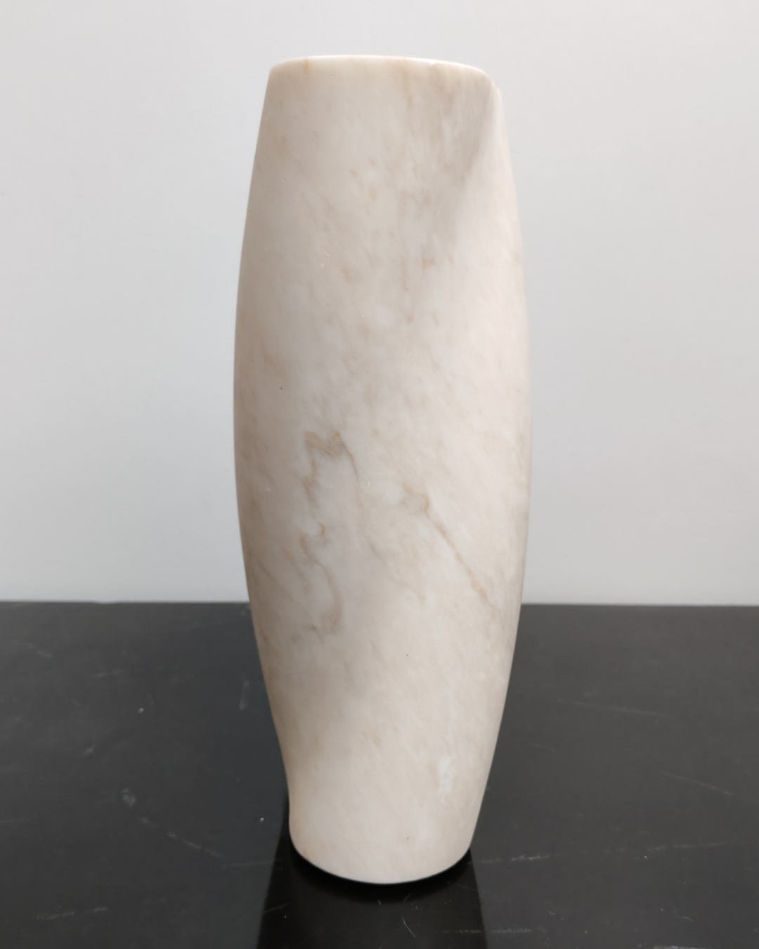 The twisted shape can be crafted from solid marble and serve as a vase for flowers.