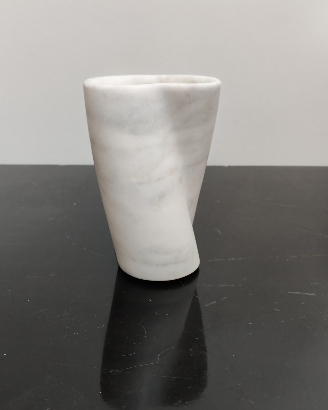 The twisted shape can be crafted from solid marble and serve as a vase for flowers.