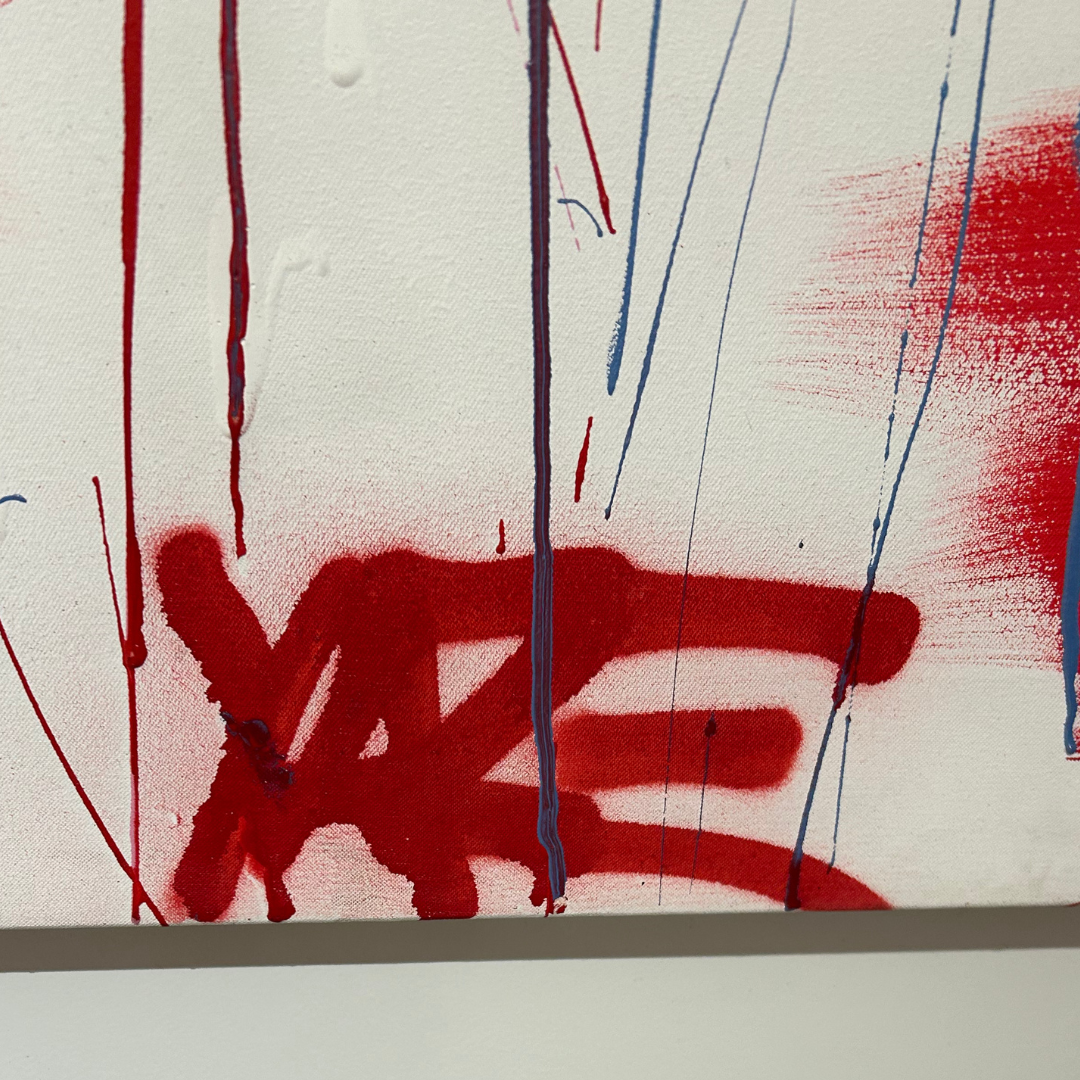 Le style est jeté, balayé par un pinceau fouettant. Les coulures sont irisées. Tout suinte. Tout coule. Tout s’organise. Les premiers coups donnés sont violents, libérateurs. Ils indiquent les premières lignes de force et organisent la toile. L’action est explosive.